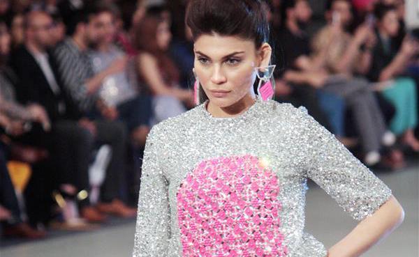 A model presents a creation by designer Khaadi on the third day of Pakistan Fashion Design Council (PFDC) Sunsilk Fashion Week 2016 in eastern Pakistan's Lahore on March 12, 2016. [Detail]