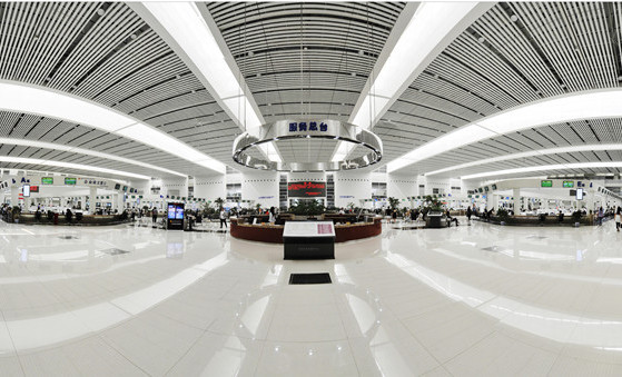 In Huai ' an Government Service Center , the 12300 - square-meter main hall is crowded with people getting their counter number and standing in line in order .[Detail]