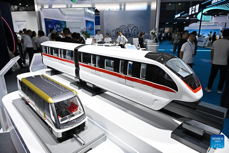 People visit the China International Metro Transit Exhibition in Qingdao, east China's Shandong Province, on Sept. 18, 2025. The exhibition was held in the West Coast New Area of Qingdao on Thursday, setting up exhibition areas such as vehicle system and equipment supply chain, signal communication system, IT technology, and artificial intelligence. (Xinhua/Li Ziheng)