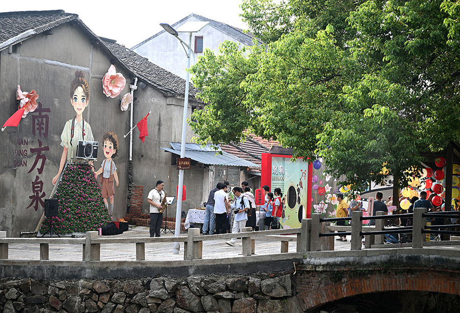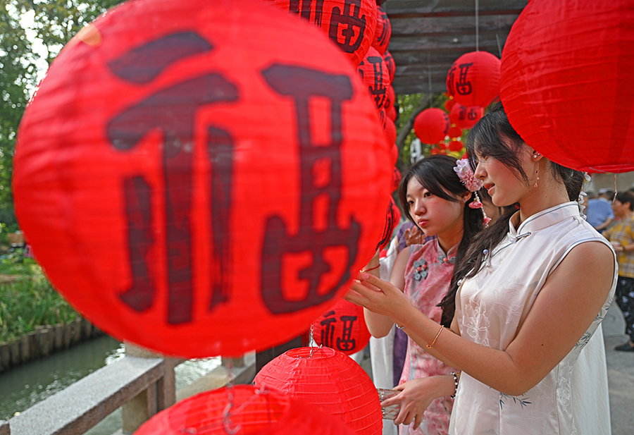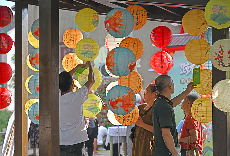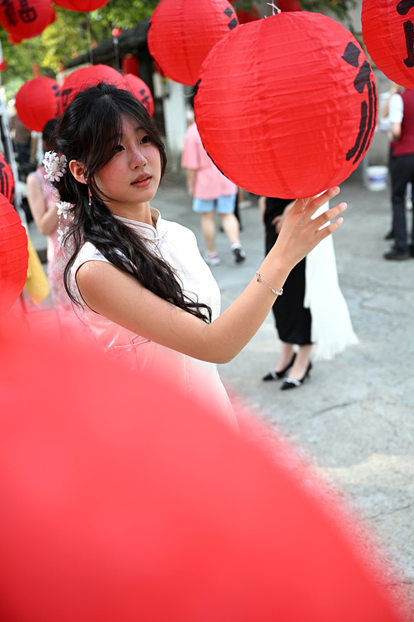 This photo taken on September 26, 2025 shows festivities at Nanquan ancient street in Binhu District, Wuxi City ahead of the upcoming Mid-Autumn Festival. (Photo/CFP)