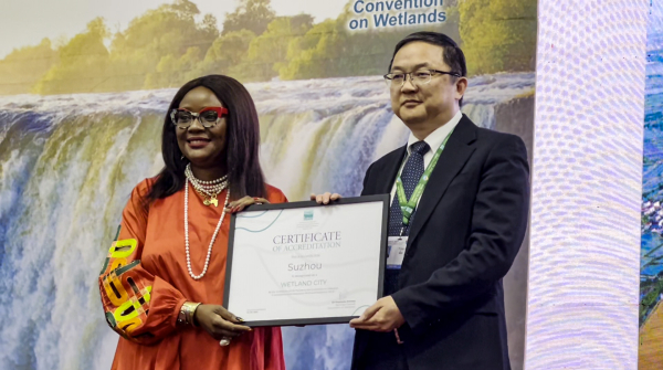 Suzhou was one of nine Chinese cities officially accredited as International Wetland Cities on July 24 during the 15th meeting of the Conference of the Contracting Parties of the Convention on Wetlands (COP 15), held in Victoria Falls, Zimbabwe.